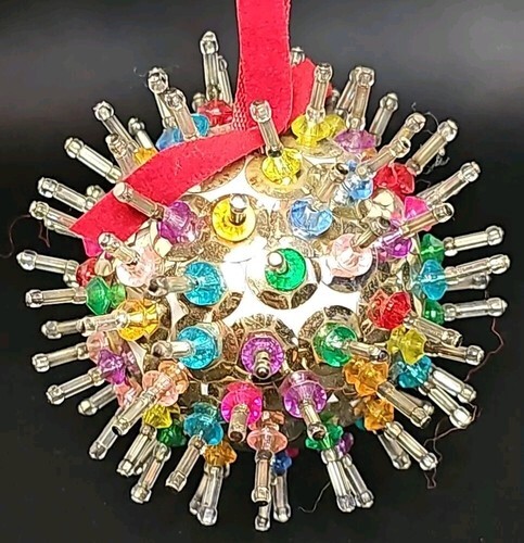 UP FOR SALE: Vintage 1970s Hand Made Sequin Jeweled Beaded Satin Ornament Rainbow GORGEOUS
