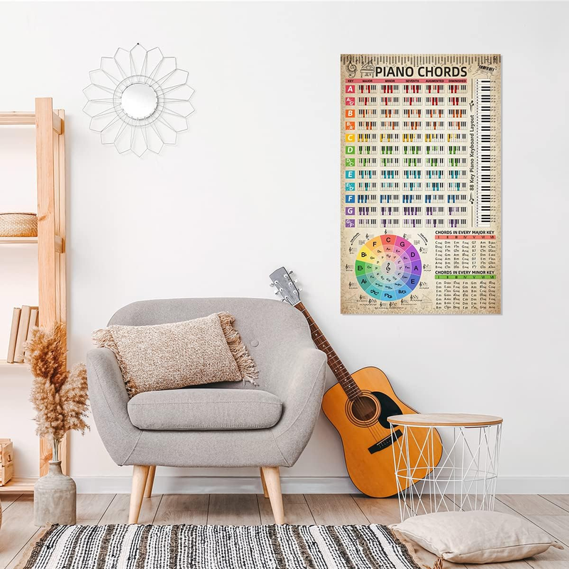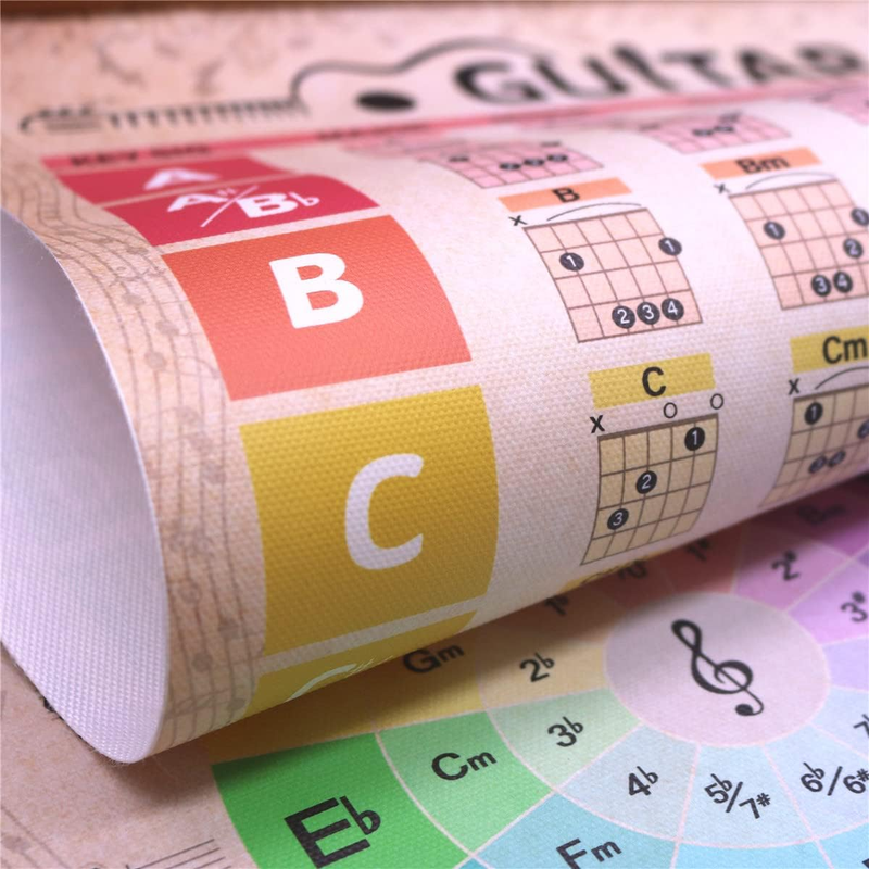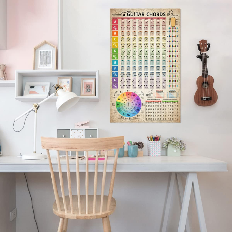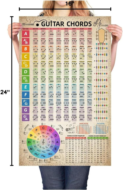 Guitar Chords Chart Poster Reference Circle of Fifths Wheel Guitar Chords with Guide Wall Art Student Educational Music Theory Wall Art for Musicians Beginners 16"X26" (No Frame