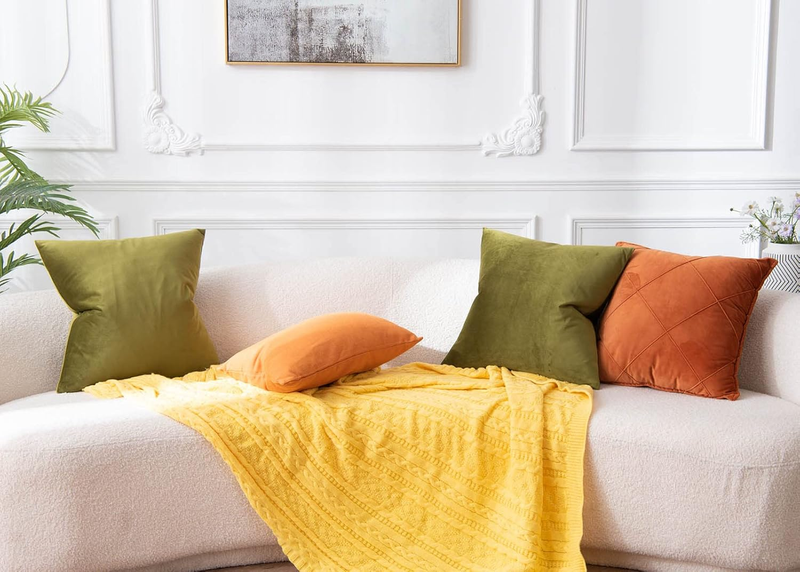 Olive Green Luxury Velvet Throw Pillow Covers 22X22 Set of 2,Decorative Soft Sol