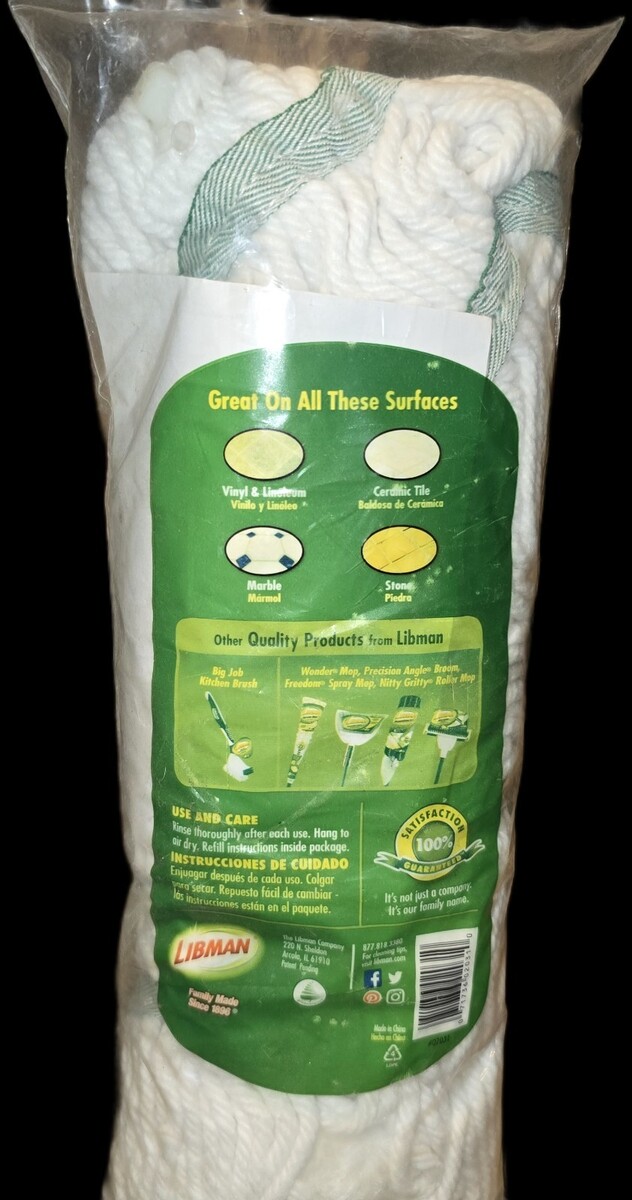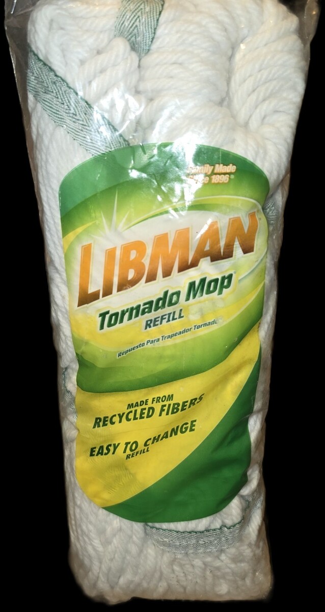 The NEW Libman Tornado Mop Replacement Head in white is easy to change and made from recycled fibers, making it a sustainable and convenient cleaning tool. This model, #02031, is designed for use with washing machines and is manufactured in China. The Libman Tornado Mop is a great addition to any home, offering a reliable and eco-friendly solution for keeping floors clean and tidy.