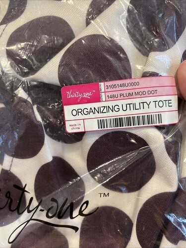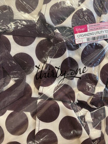 Thirty-One Organizing Utility Tote New 148U Plum Mod DOT 3105 15” X 10” X 6”