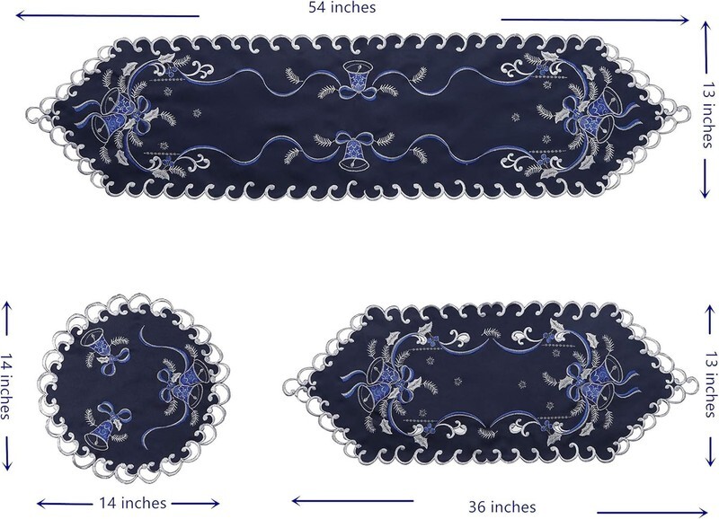 Holiday Christmas Table Runner 13"X34", Cutwork Embroidered Floral Christmas Blu