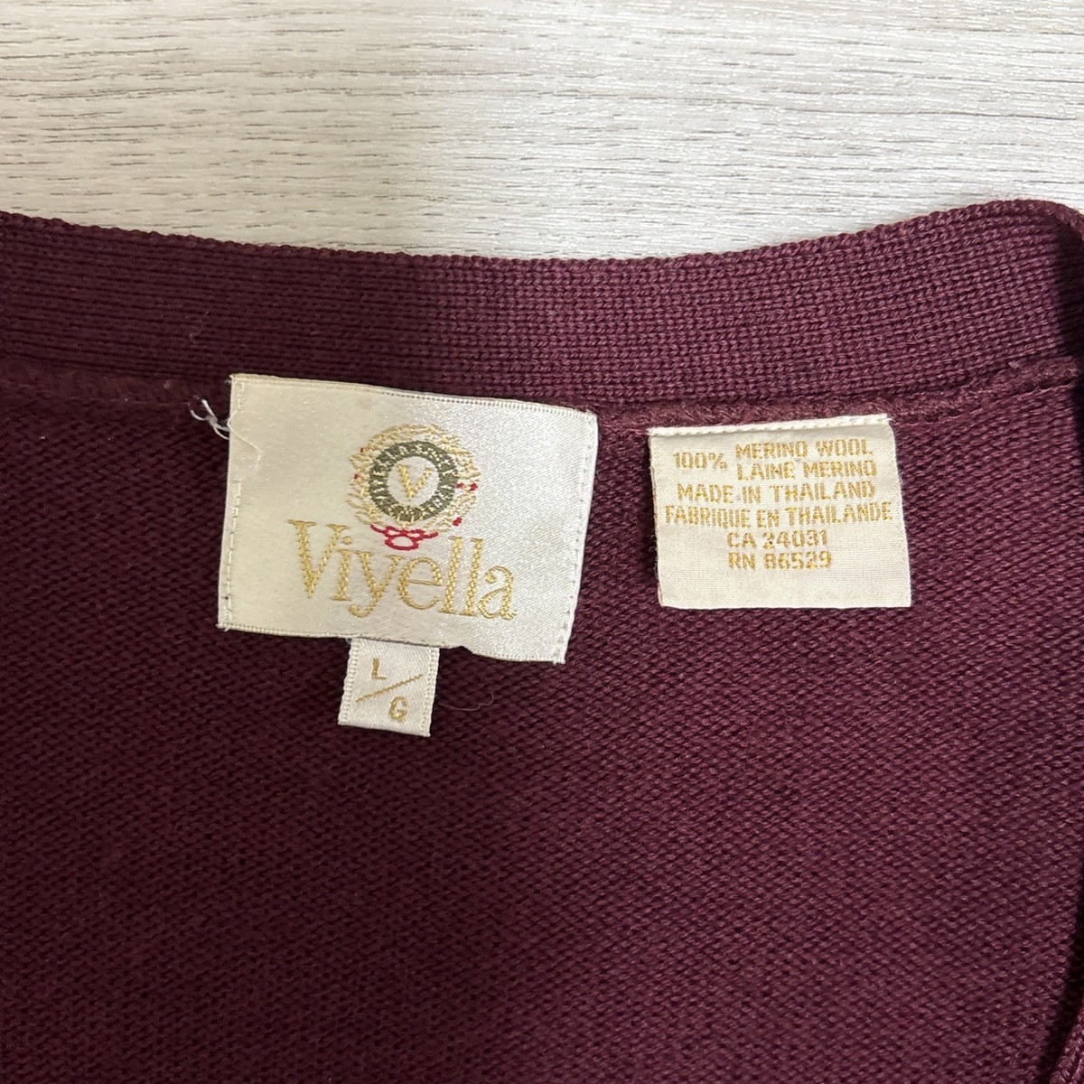 Vintage Viyella Merino Wool Sweater Mens L Oxblood Burgundy Grandpa Cardigan