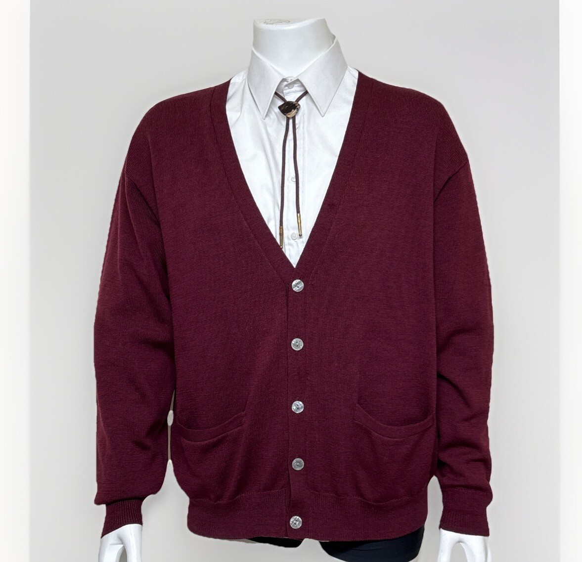 Vintage Viyella Merino Wool Sweater Men's Large Oxblood Burgundy Cardigan