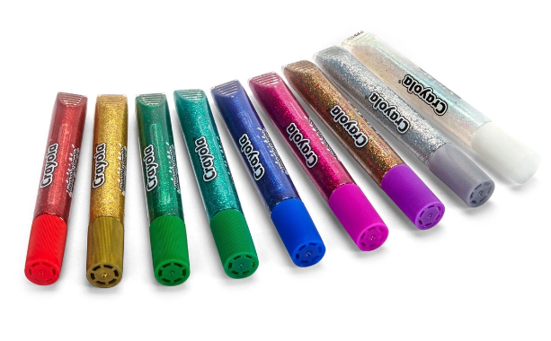 NEW Crayola Washable Glitter Glue, Assorted Colors Fiery Flecks 9 Tubes 3.1 oz