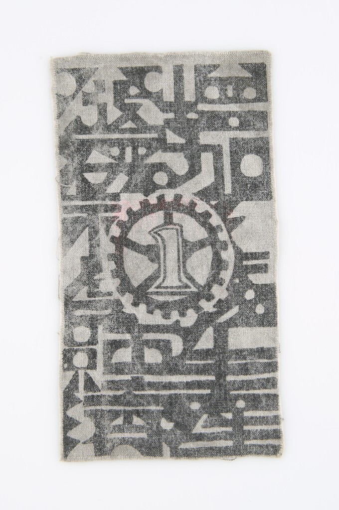 Il dritto mostra il pugno di un operaio, sopra una stella, sopra una falce e un martello; timbro rosso di convalida