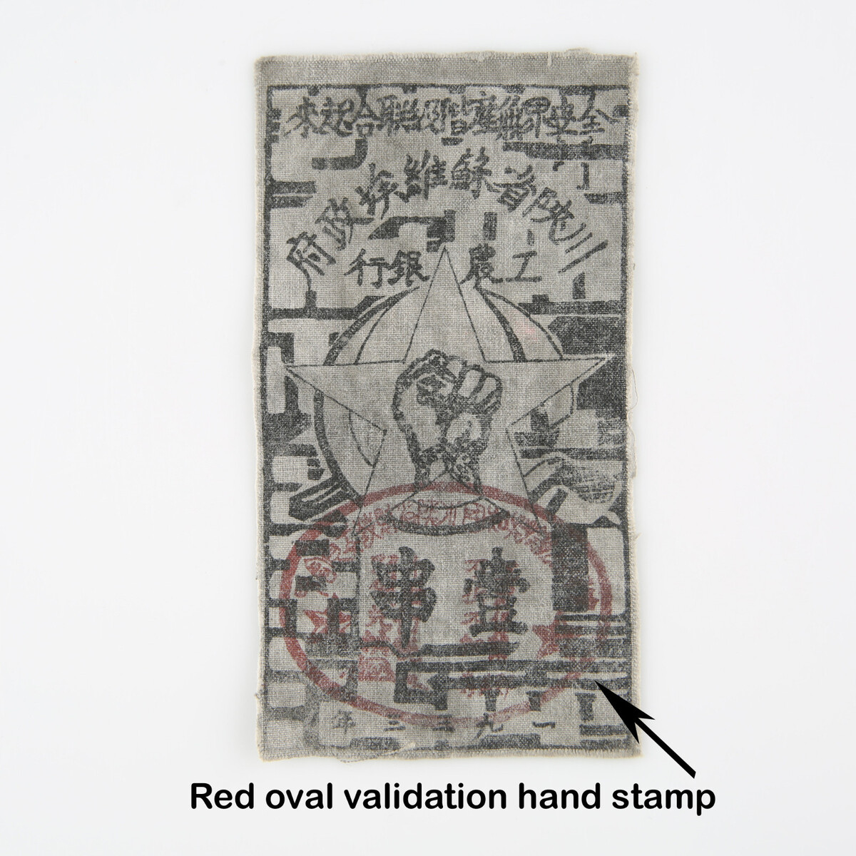 1933 Cina 1 Banconota di stoffa Ch'uan Lavoratori sovietici provinciali di Szechuan-Shensi PS#3217