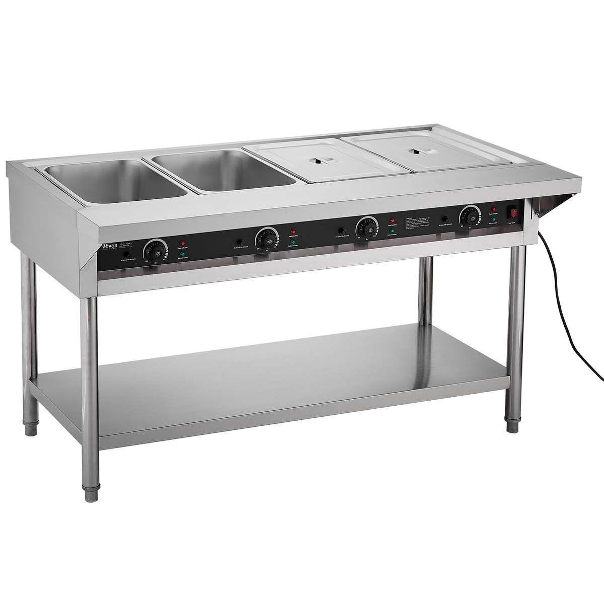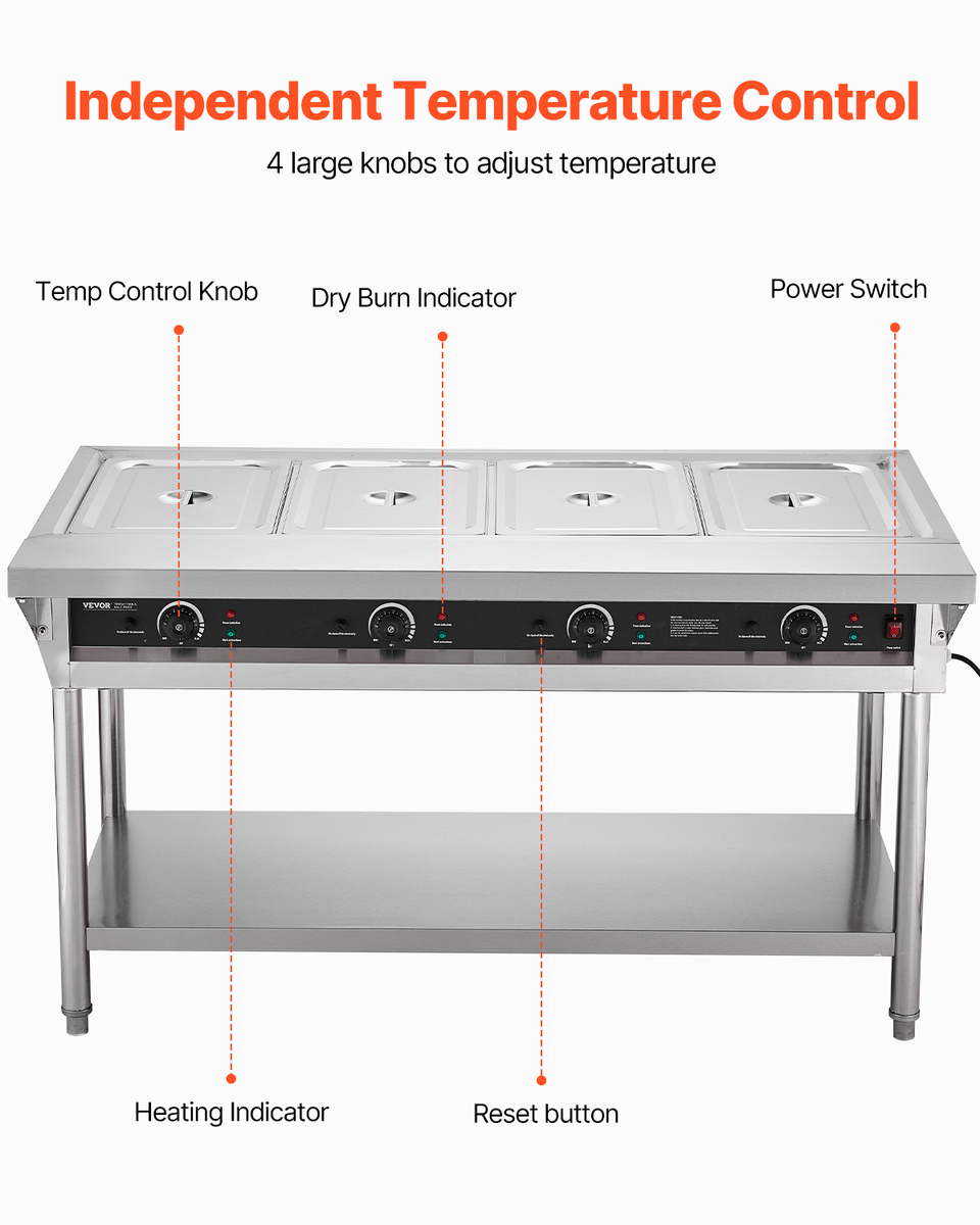 VEVOR 4-Pan Commercial Food Warmer, Electric Steam Table, Temperature Control