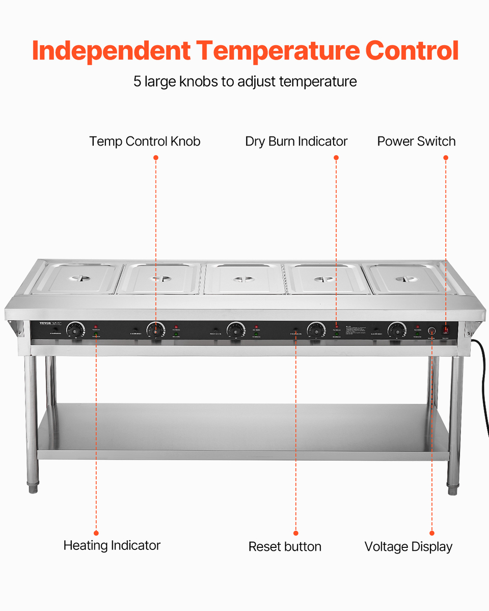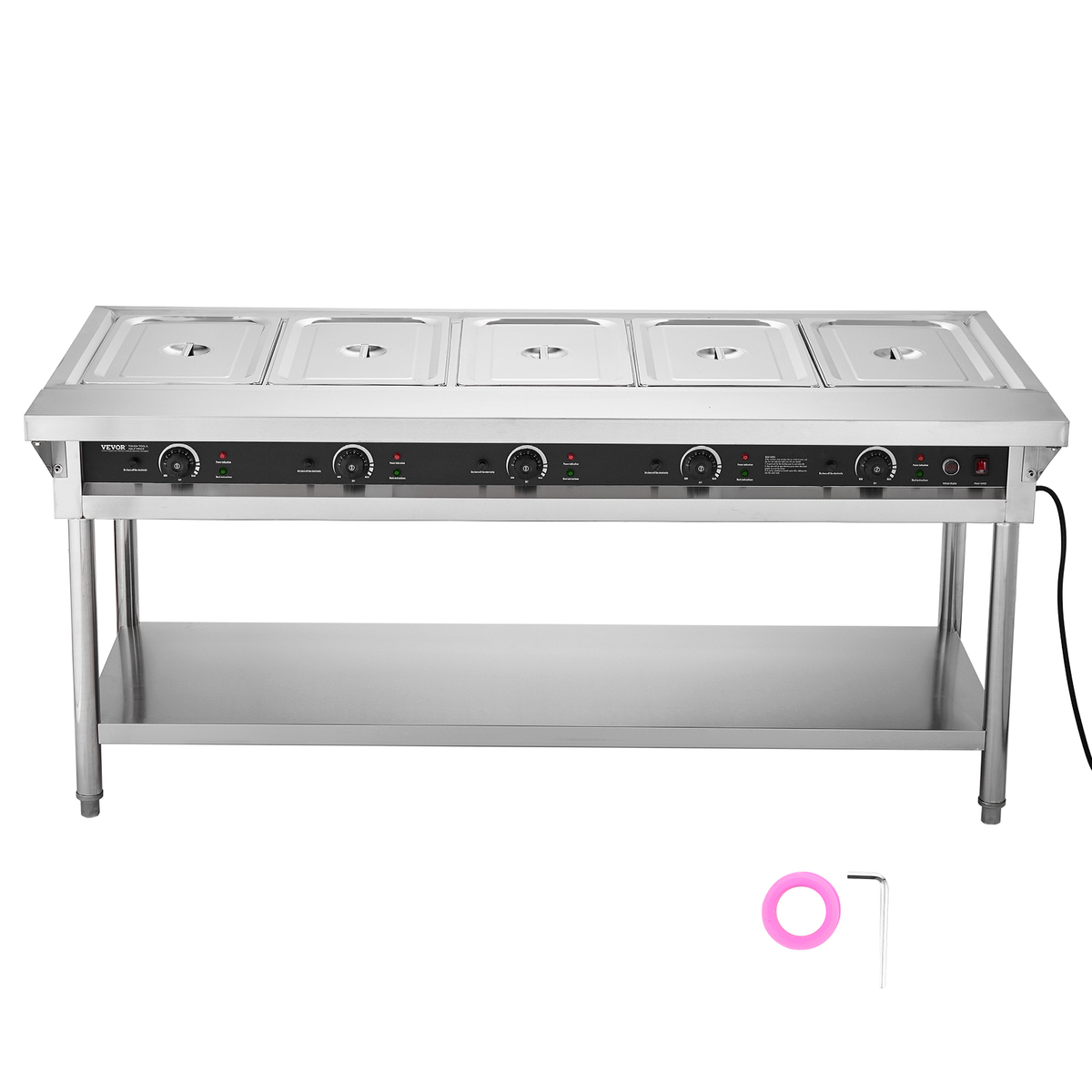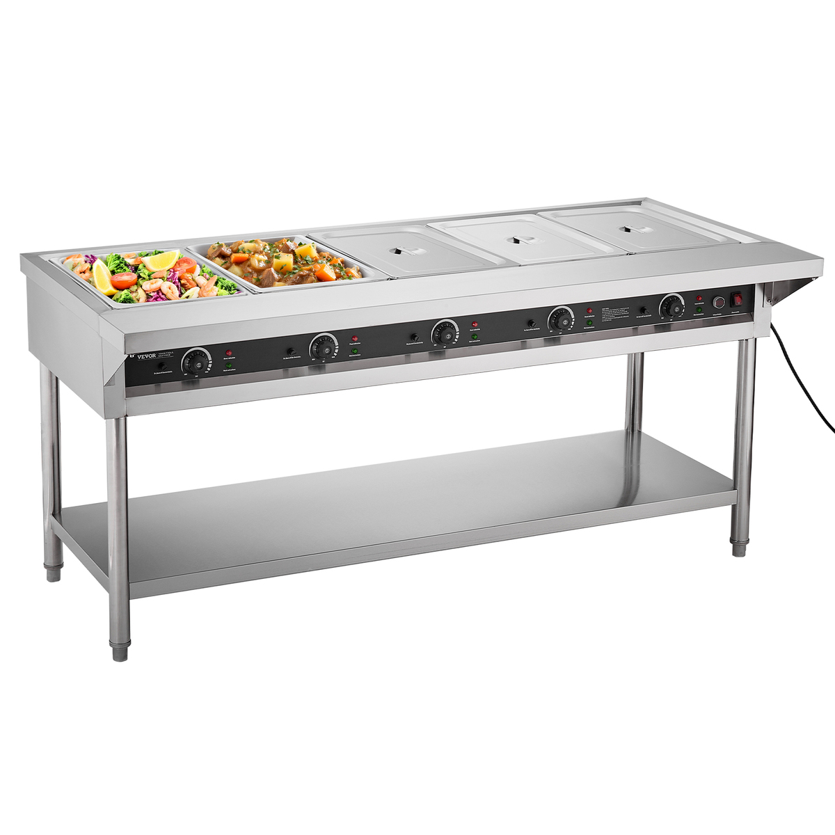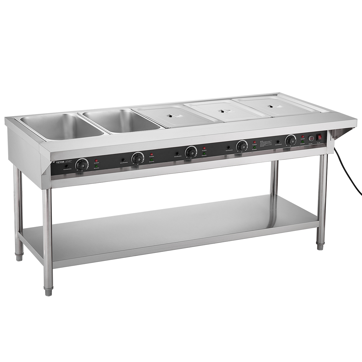 VEVOR 5-Pan Commercial Food Warmer, Electric Steam Table, Temperature Control