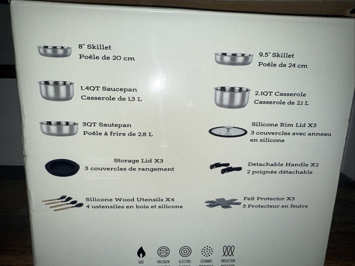LA SERA Fine Cookware 20 Piece Detachable Handle Cookware Set ~ New ~