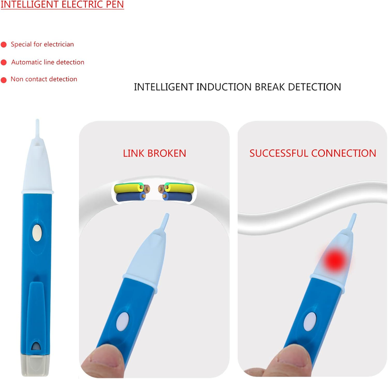 ?electric pen tester?NON-CONTACT DETECTION of AC voltage in cables, cords, circuit breakers, lighting fixtures, switches, non-tamper-resistant outlets, and wires, VISUAL AND AUDIBLE INDICATORS of voltage detection with a high intensity, bright red LED, and an audible tone.