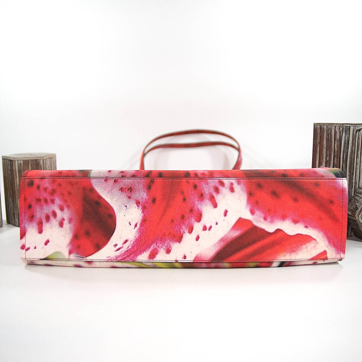 Tory Burch Bold Pink Lily Nylon Leather Large Tote Bag NWT