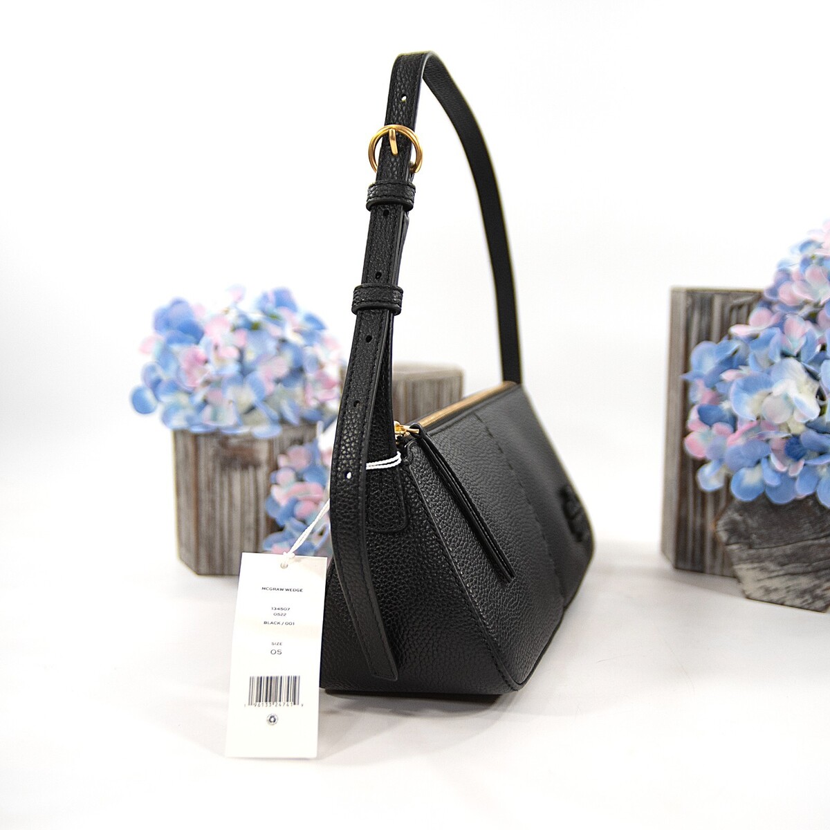 Tory Burch Black Leather McGraw Wedge Shoulder Bag NWT $350