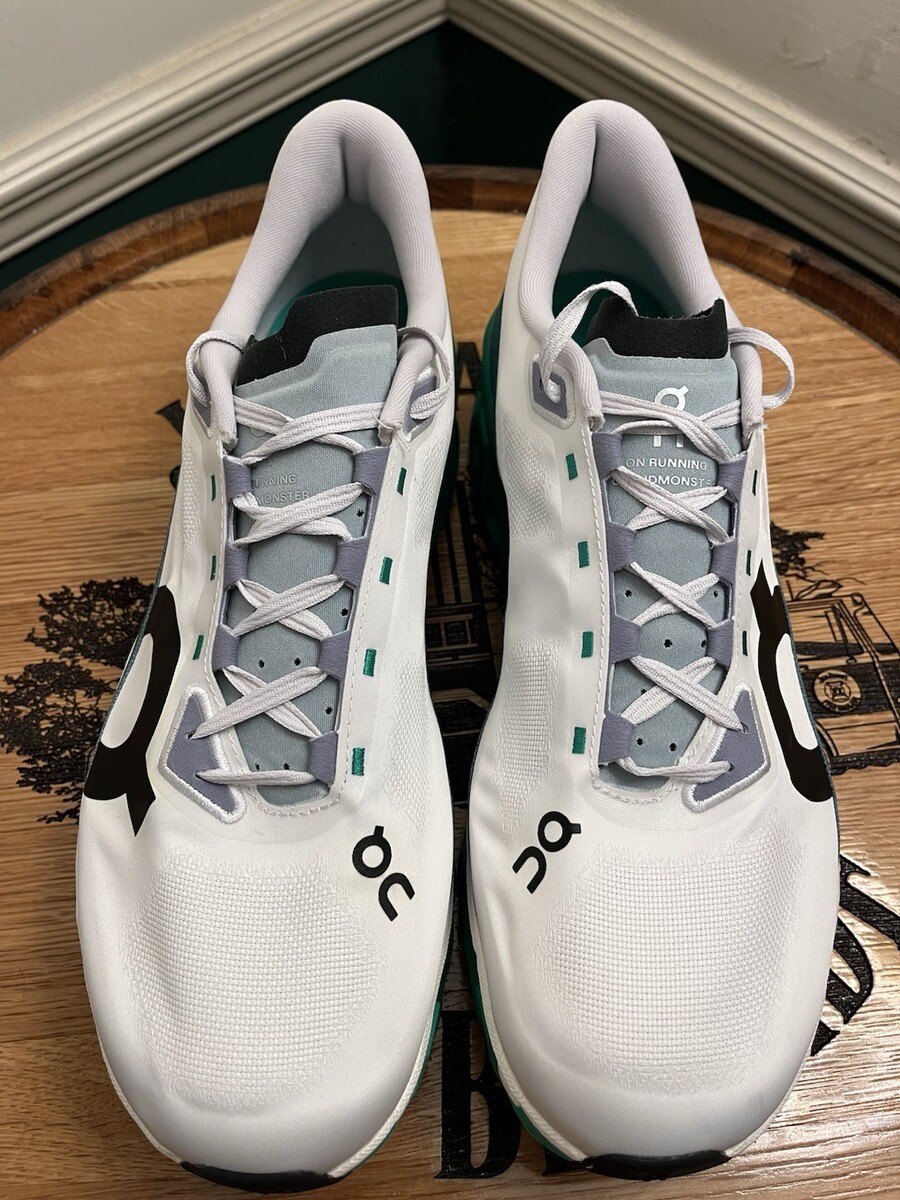 ON Running Cloudmonster Hyper White/Green Training Shoe, Men’s Size 13.0