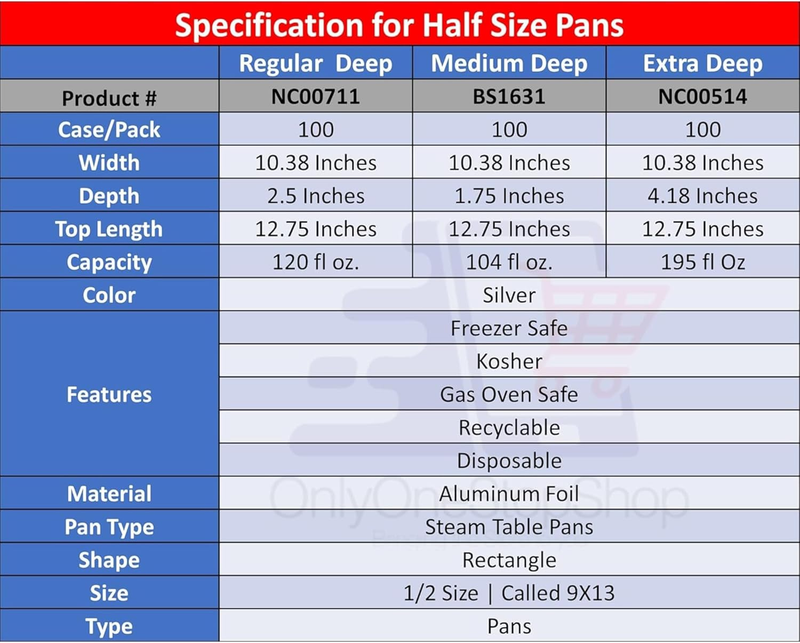 Disposable 9X13 Aluminum Foil/Pan with Dome Lids Half Size Deep