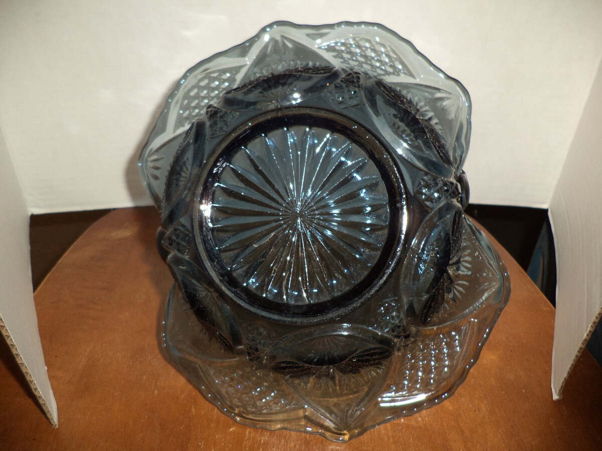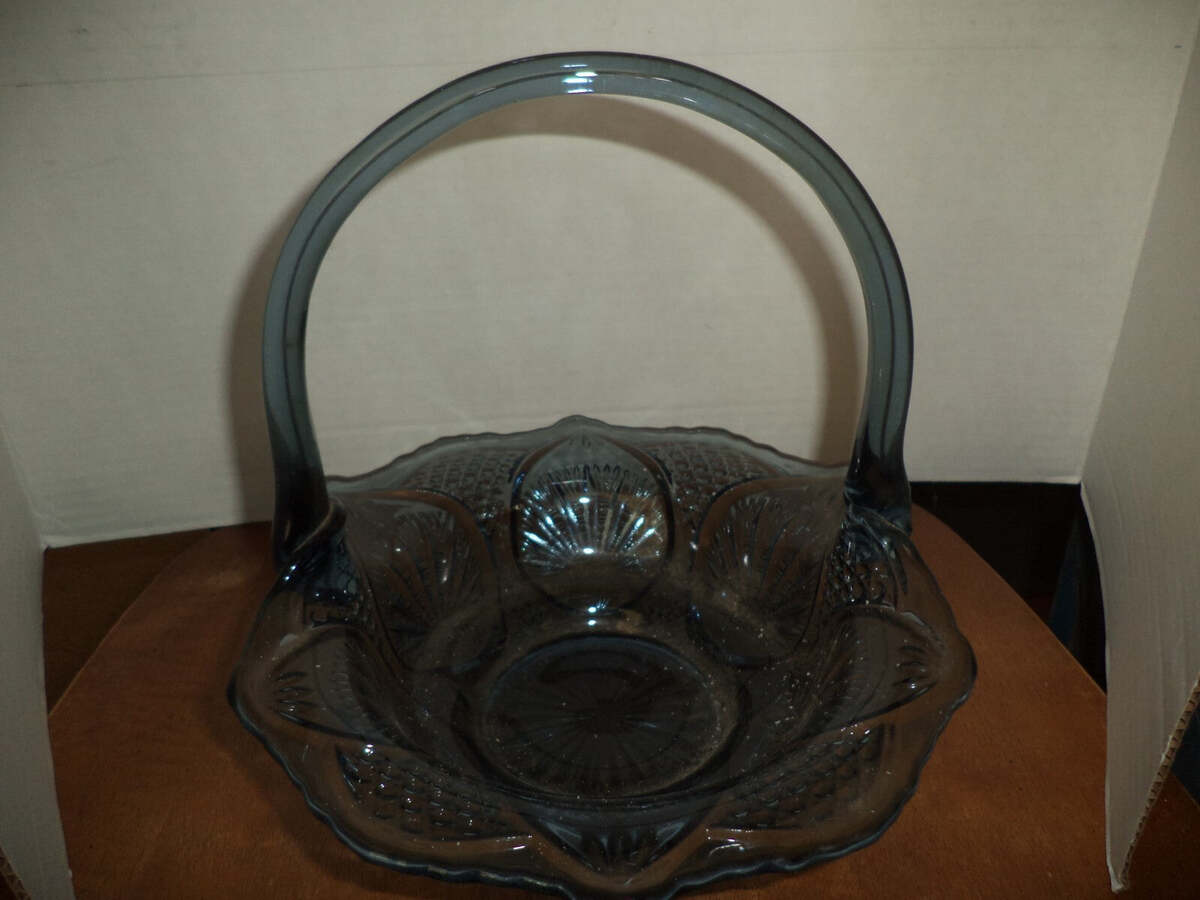 Heavy Blue Candy Dish With Handle. Rippled rim measures 9 1/2" in diam and about 8 1/2" tall