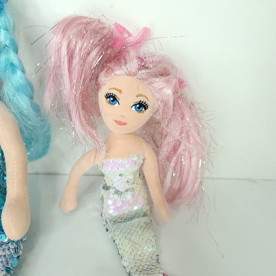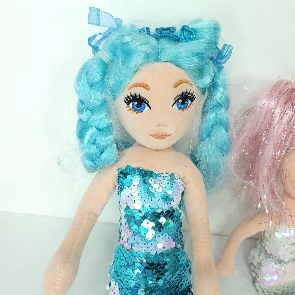 Lot of 2 TY Mermaid Doll Cora Indigo Sequin 14” Plush Stuffed Animal Pink Blue
