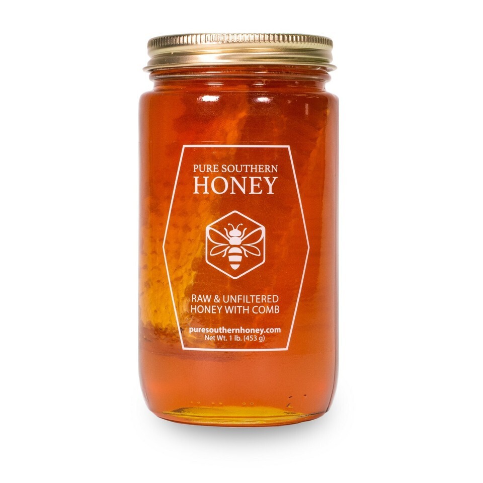 Raw & Unfiltered Honey with Comb 1lb. by Pure Southern Honey, New 2025 Crop10...