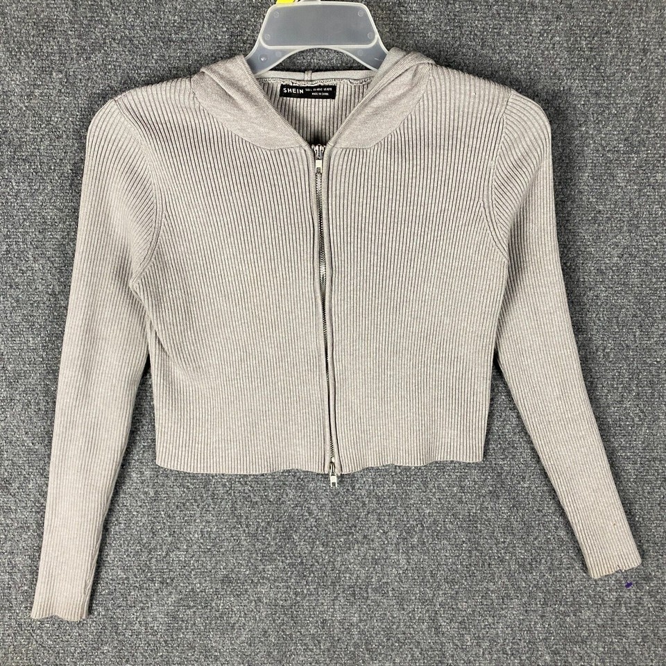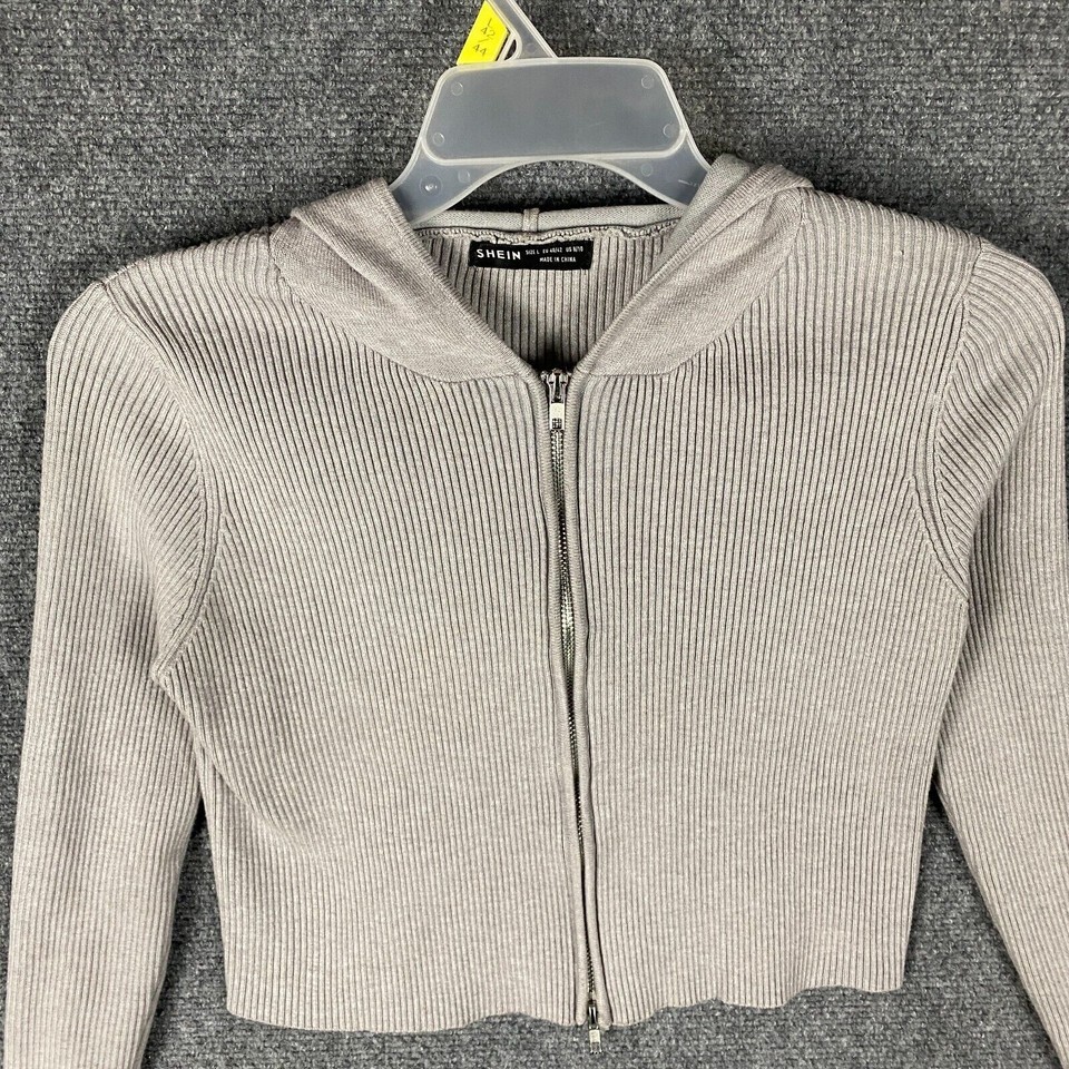 Shein Hoodie Women's Large Full Zip Cropped Gray Polyester Blend L
