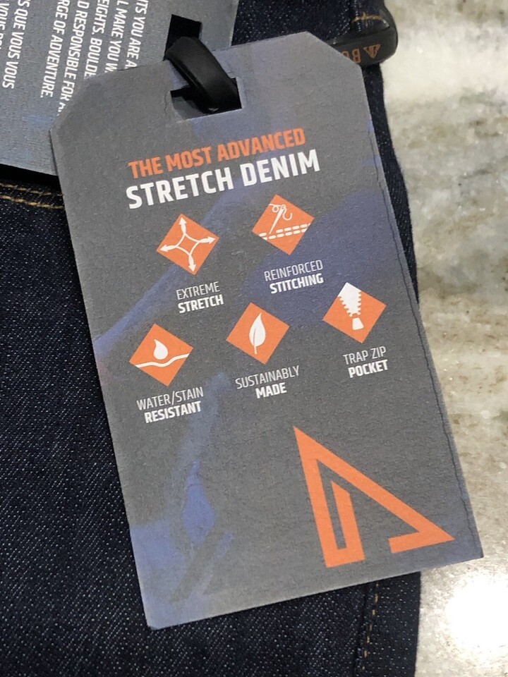 Extreme Stretch/Reinforced Stitching/Water/Stain Resistant/Sustainably Made/Trap Zip Pocket. Inventory Location MW550