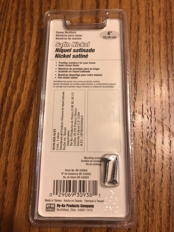 Hy-Ko Satin Nickel Number 8 Prestige Series Satin Nickel Weather Resistant 4"