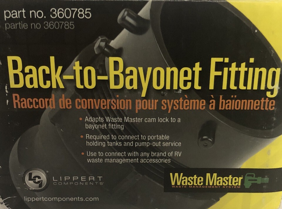 You Will Receive 1 ea Model: 360785 Lippert Components Waste Master Male Cam to Male Bayonet Fitting. Condition is "Brand New".