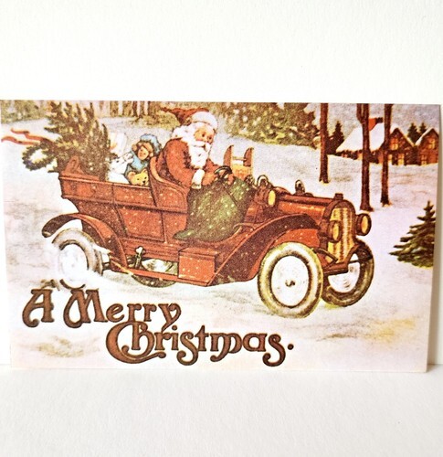 Santa A Merry Christmas Antique Sleigh Car Postcard Hong Kong Print PCBG6B