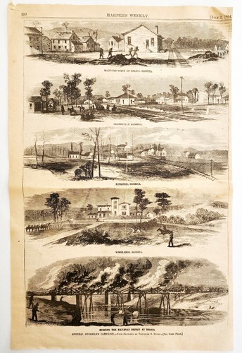 1864 Civil War General Sherman Campaign Wood Engraving Art Victorian Harper HM2E