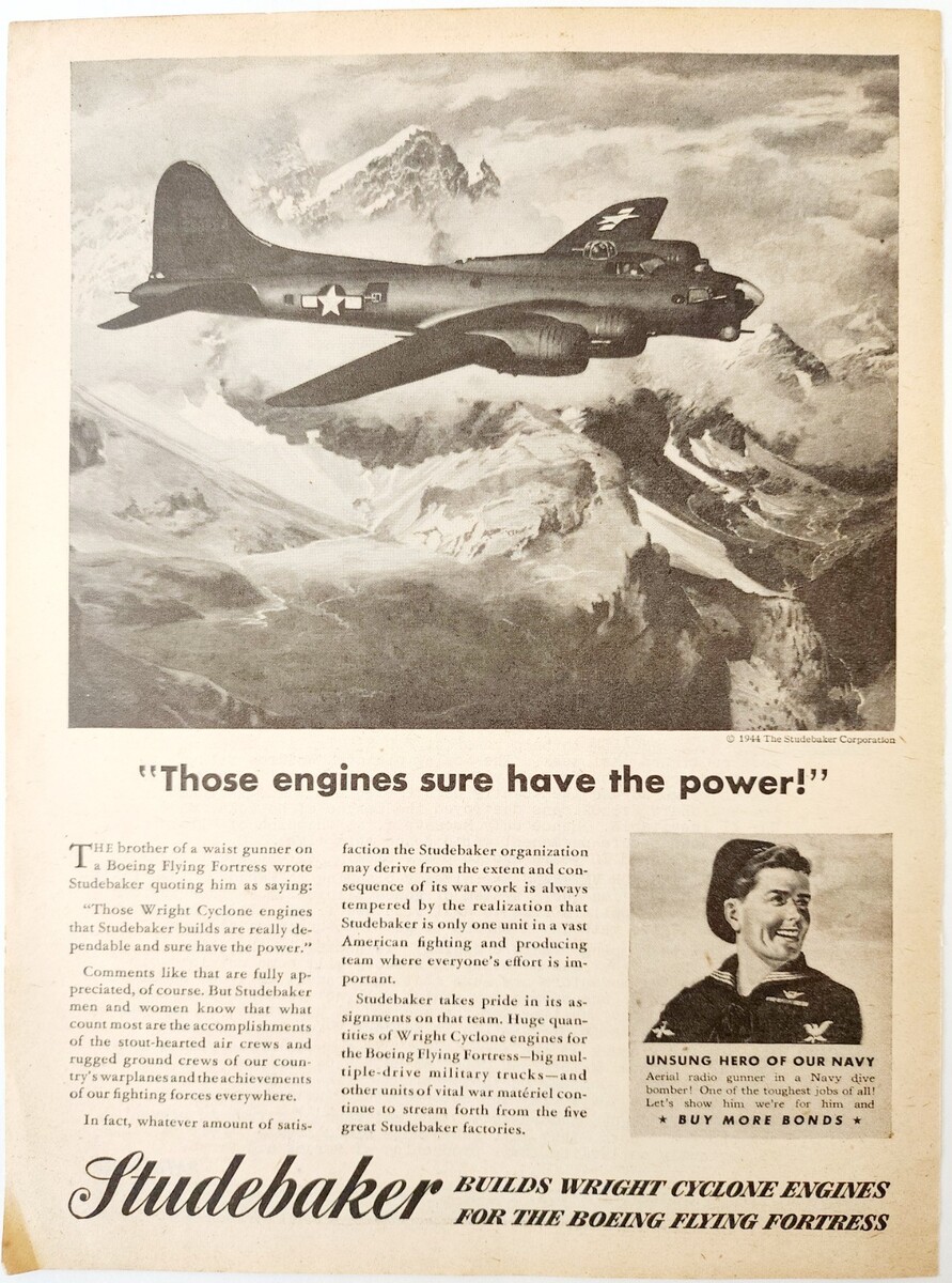 1944 Studebaker Boeing Flying Fortress Advertisement WW2 Era Military Navy DWP7B