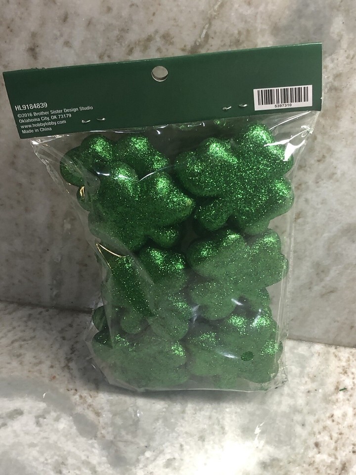 ST PATRICKS DAY 2.36" GLITTER FOUR LEAF CLOVER SCATTER FILLER CRAFTS DECOR 12 PC