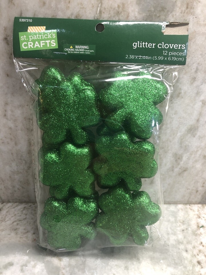 Saint Patrick Crafts Glitter Clovers. 12 pc.