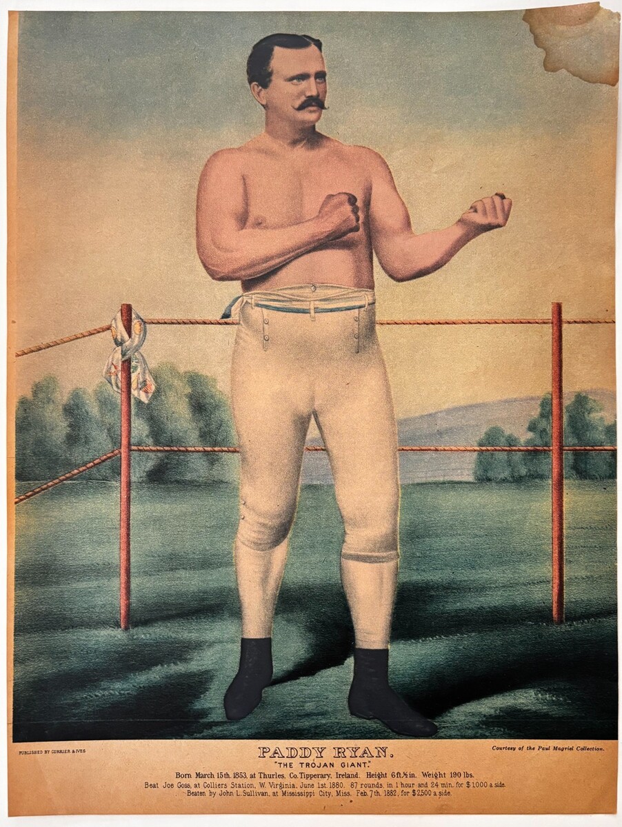 1951 Paddy Ryan Trojan Giant Boxing Police Gazette Litho Print Sports DWXX4