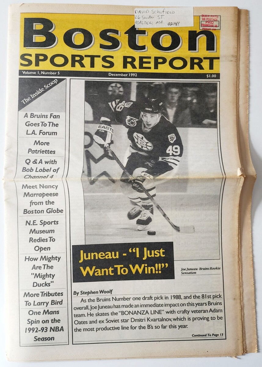 1992 Boston Sports Report Newspaper Bruins NHL Joe Juneau Red Sox Celtics DWF18