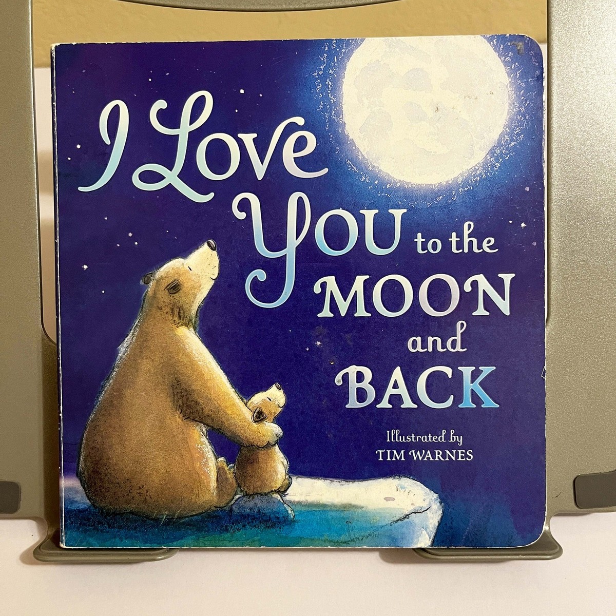 Discover the heartwarming tale of 'I Love You to the MOON and BACK,' a beautifully illustrated board book perfect for young readers. Featuring charming illustrations by Tim Warnes, this book tells a tender story of love between a parent and child bear. This copy is a sturdy board book in good used condition, showing some light wear to the corners and edges, ideal for little hands. A perfect bedtime story for children or a lovely addition to a collection of modern picture books.