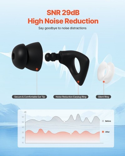 Sleep Noise Reduction: These earplugs feature an NRR of 25dB (SNR 29dB), blocking snoring, traffic, and construction noise to create a peaceful sleep environment, helping you enjoy deeper, more restorative sleep.