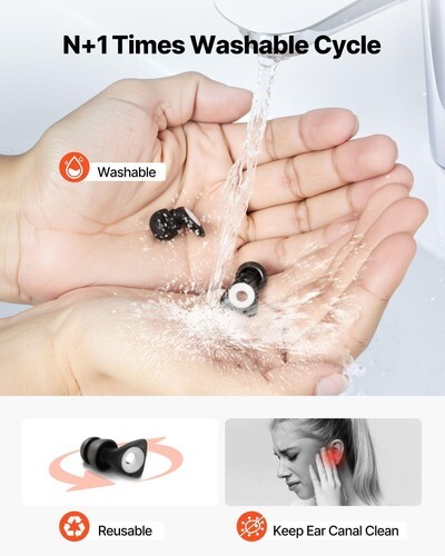 Washable and Reusable: Made of silicone, these earplugs are washable and reusable, keeping them clean and hygienic. This reduces the risk of ear infections, providing a cleaner, healthier experience for your ears.