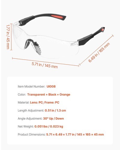 Comfortable to Wear: The angle and length of the work goggle arms can be adjusted to fit the face, and the overall weight is only 0.051 lbs. With a soft nose bridge, the goggles are comfortable for all-day wear and are less likely to slip during physical activities