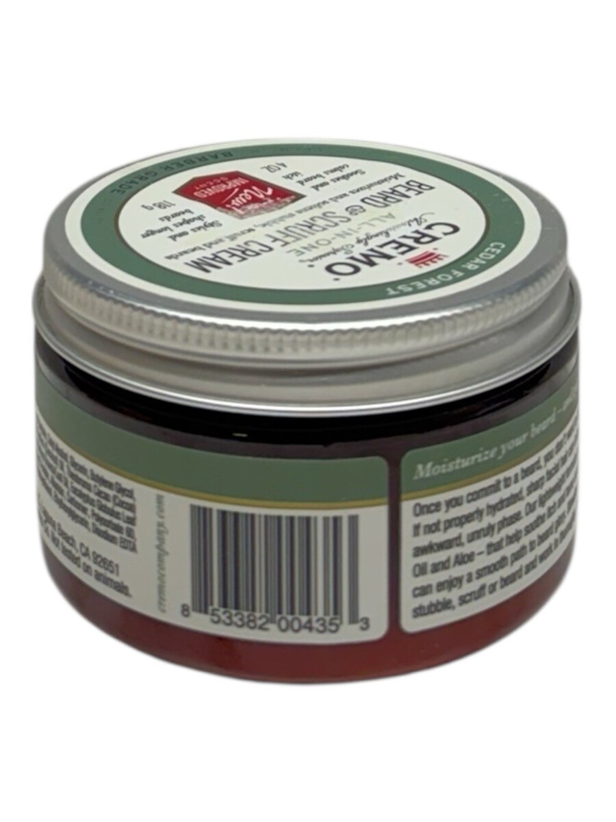 Cremo All In One Beard Scruff Cream CEDAR FOREST Soothes Beard Itch 4oz.