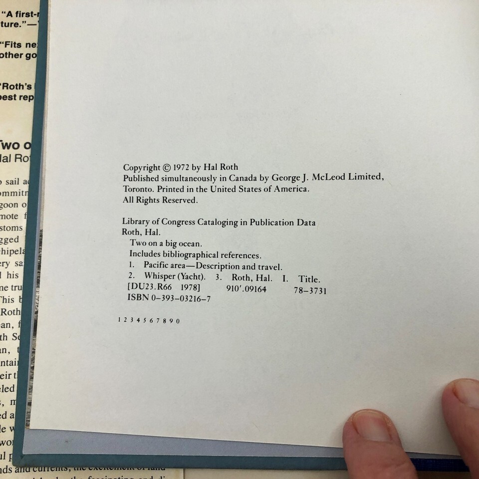 Two on a Big Ocean HBDC Hal Roth First Edition CR 1972