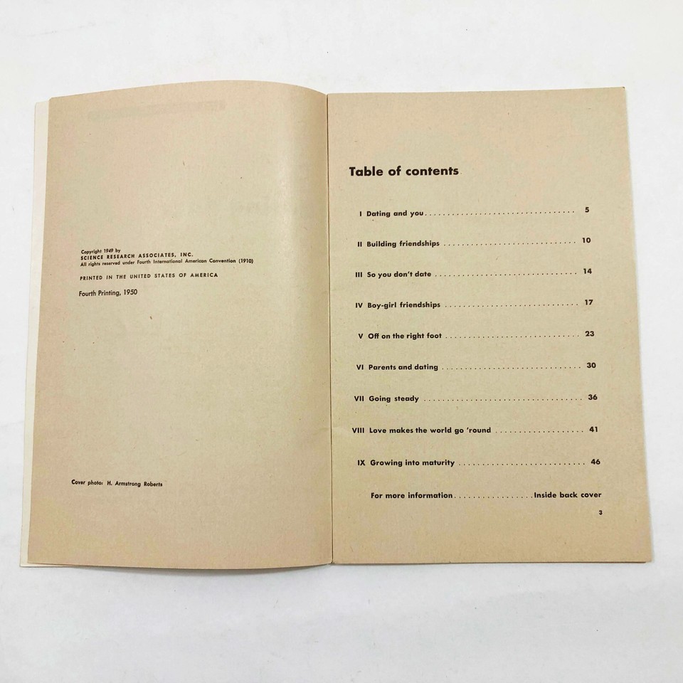 Part of the "Life Adjustment Series" "Dating Days" was written to help teenagers with their dating problems.