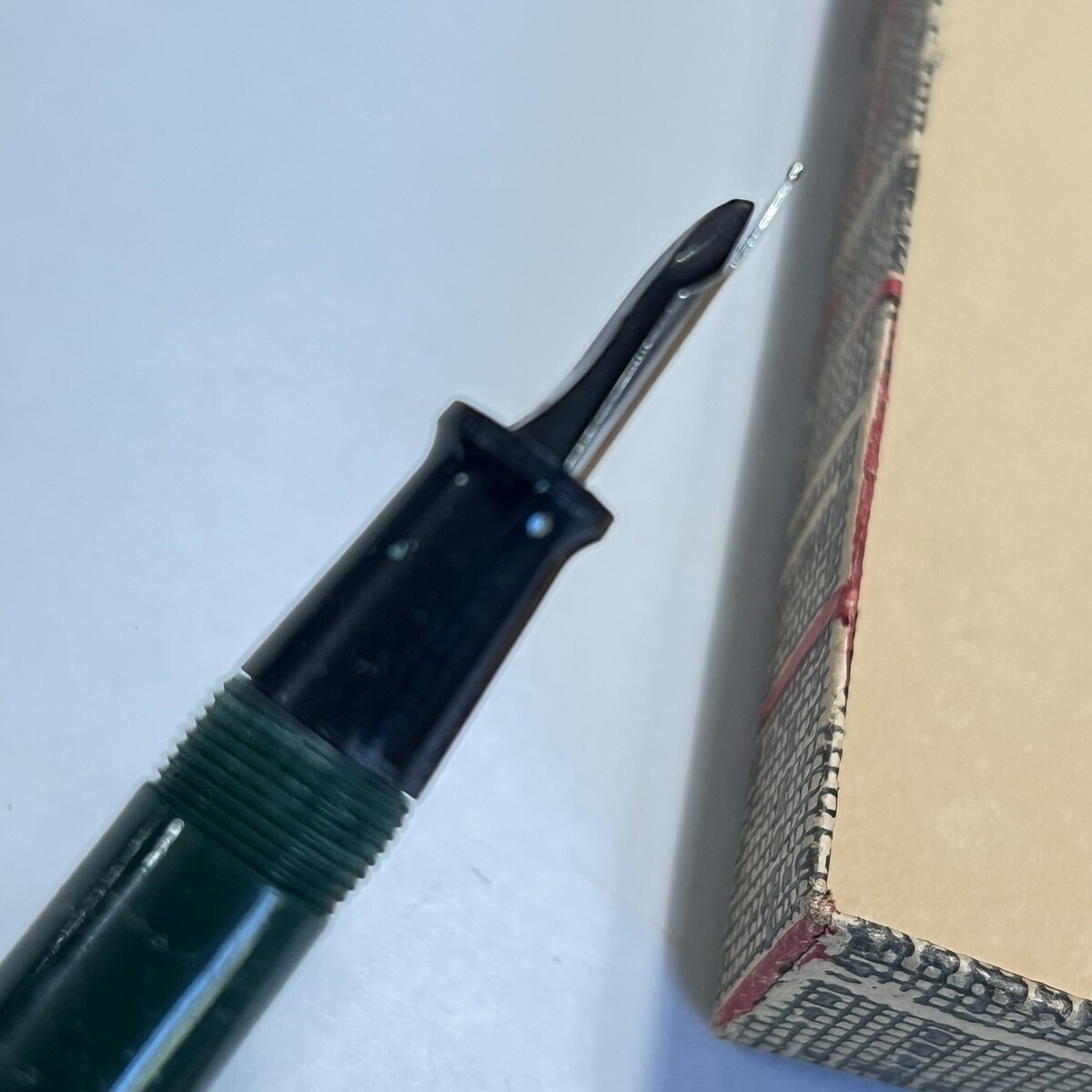 The fountain pen would need a new ink sack. You can hear it crackle when you lift the fill lever. The little band that?s supposed to go around the bottom of the cap is loose.