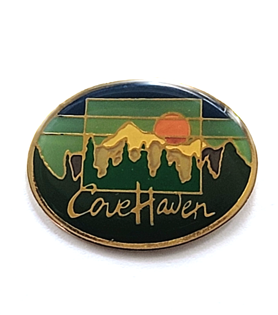 Cove Haven Mountain Sunset Scene Gold Tone Enamel Pin