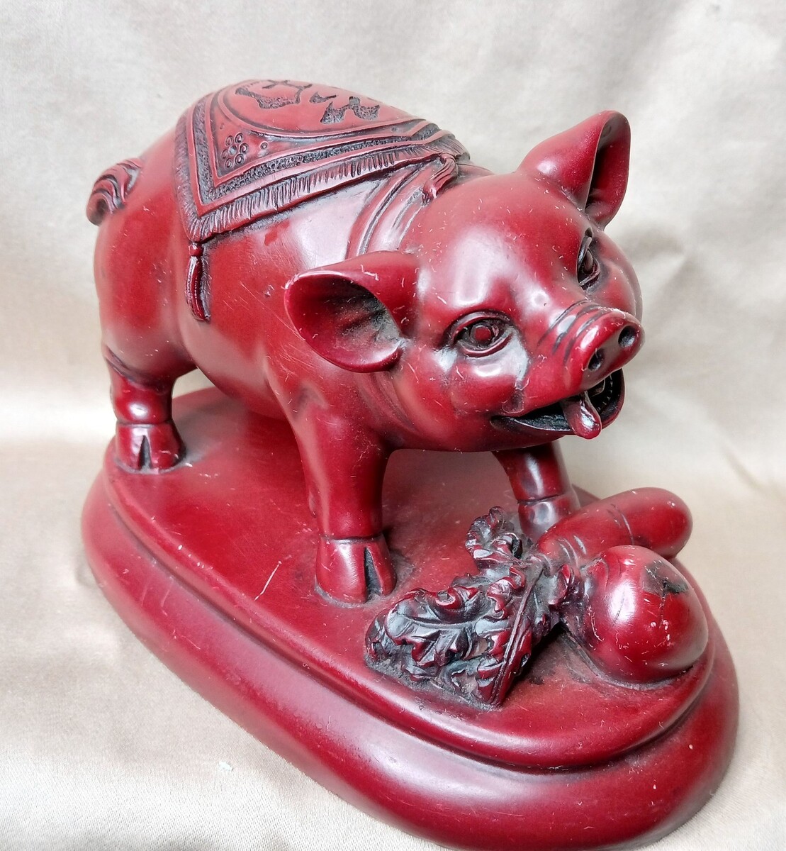 Vintage Chinese Red Resin Pig Figurine based on the Chinese Zodiac