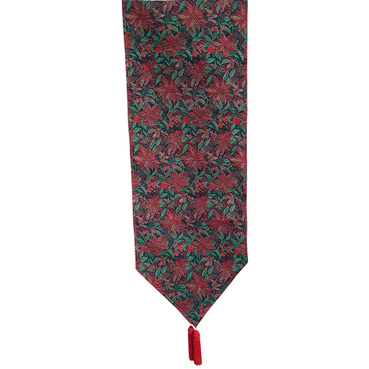 Add timeless charm to your holiday decor with this vintage tapestry-style table runner featuring a classic holly and berries motif.