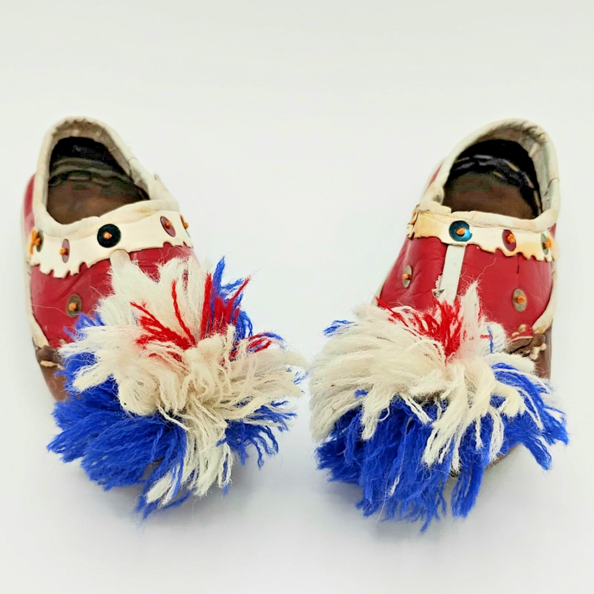 Vtg Antique Tsarouhi Opanke Greek Kids Shoes Leather Handmade Dance Pom Pom Lot