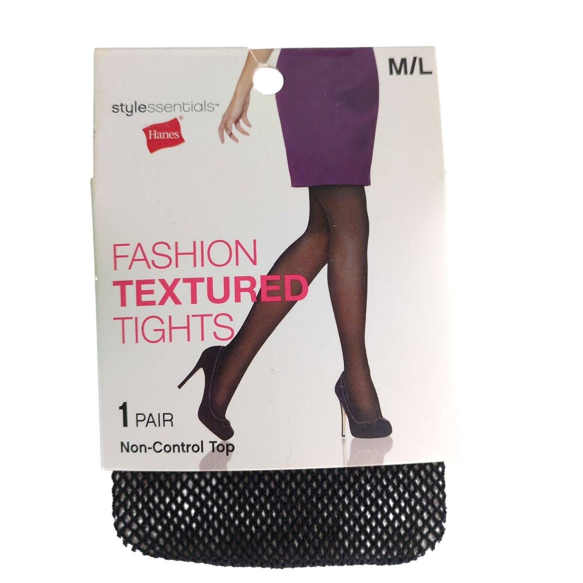 Wholesale Bulk Lot of 25 Hanes Fashion Black Textured Tights Classic Fishnet M/L NEW