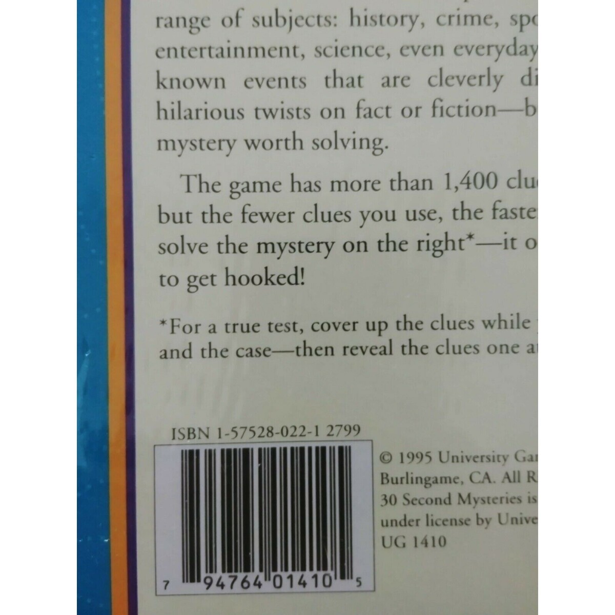 30 SECOND MYSTERIES - Brainteaser Game - Vintage 1995 University Games