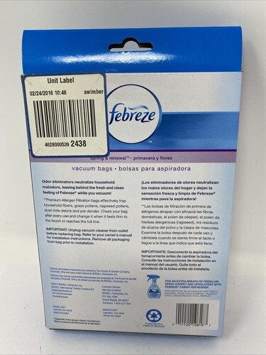 Febreze Hoover's Vacuum Bags, Spring & and 50 similar items