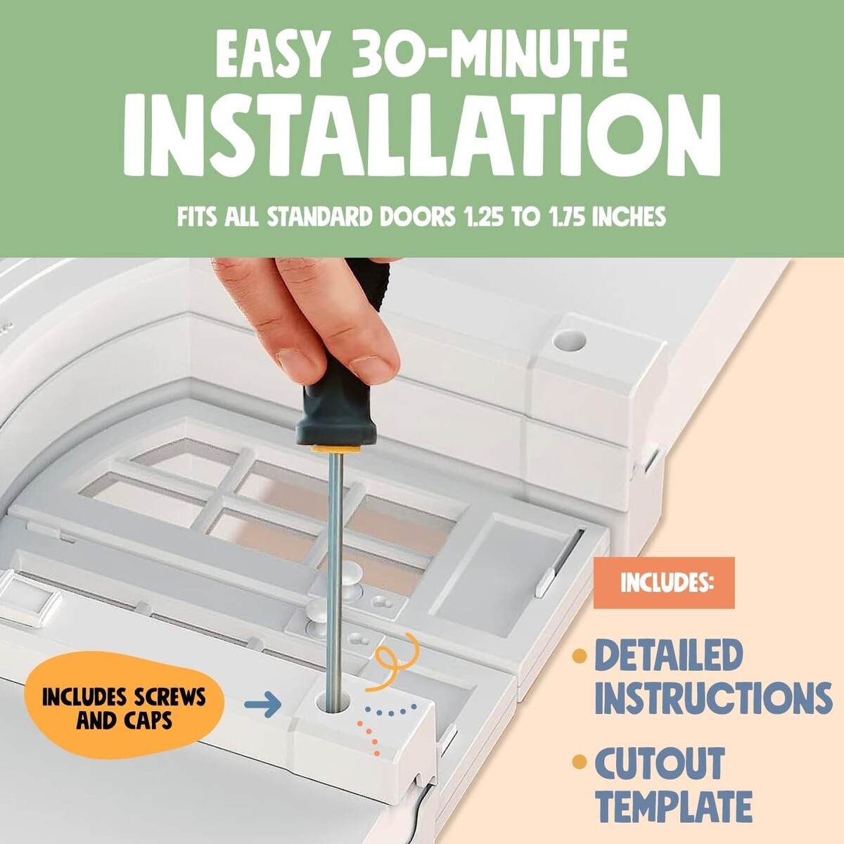 Cat Door Interior Door - Meow Manor Extra Large Pet Door, 10.25 x 11 No-Flap Cat Door Interior Door for Cats up to 30 lbs, Easy DIY Setup, Secured Installation in Minutes, No Training Needed (White)