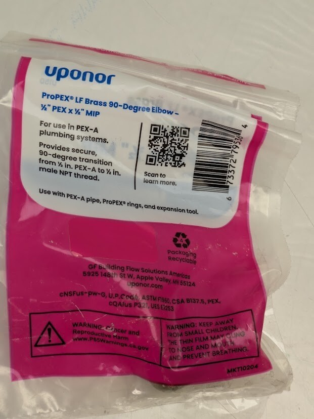 Uponor ProPEX Lead-free (LF) Brass Elbow with MIP makes secure, reliable, 90 connections for 1/2 in. Uponor PEX-a pipe. Transitions to 1/2 in. male NPT thread. Approved for use in PEX-a potable-plumbing systems.